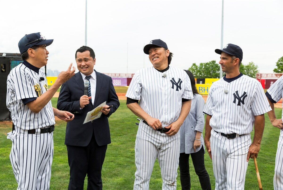 手前左から とんねるず石橋 大西洋平テレビ朝日アナウンサー 松井秀喜 ホルヘ ポサダ C テレビ朝日 とんねるず石橋と松井秀喜 リアル野球ban でニューヨーク決戦 画像ギャラリー 2 6 お笑いナタリー